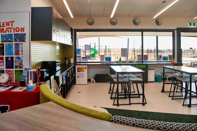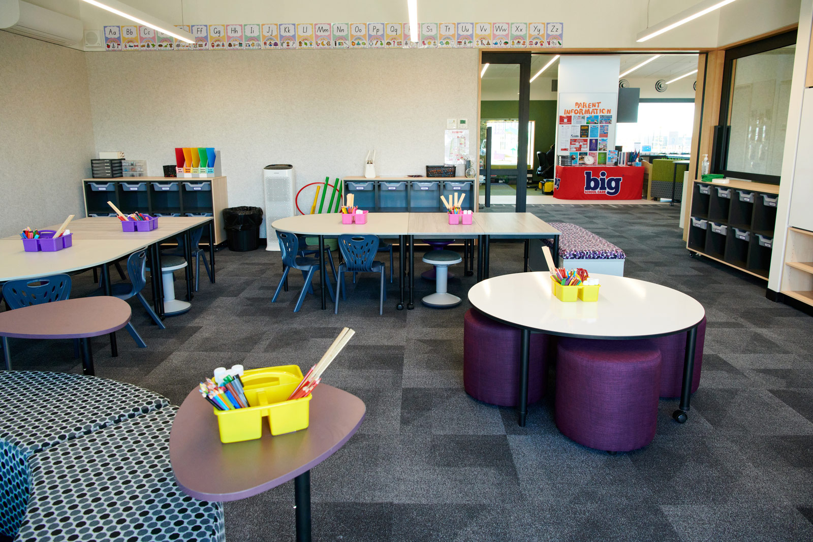 An exciting new Architecturally designed primary school in the northern suburbs of Melbourne has received many compliments for its classroom layouts and colour schemes. Principal Mark Miatello was determined to provide “an inclusive and rigorous learning environment that challenges and engages young people to grow as passionate learners”. BFX worked with Principal Miatello to create future focused classroom furniture layouts and colour schemes that catered for all learning styles and complimented the Architectural palate. Furniture included a mix of agile and flexible items such as low to high desking with compatible soft seating and mobile in class teacher units. BFX also provided the furniture for the Admin, Staff and Reception areas which included a custom-made reception desk.