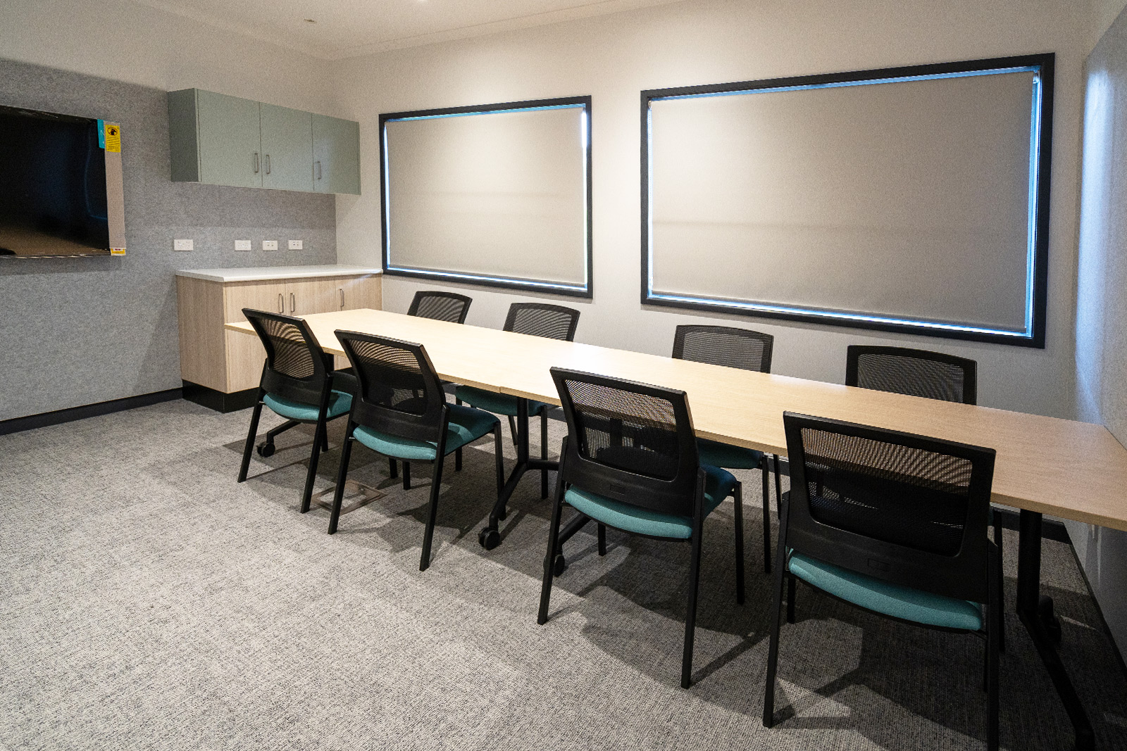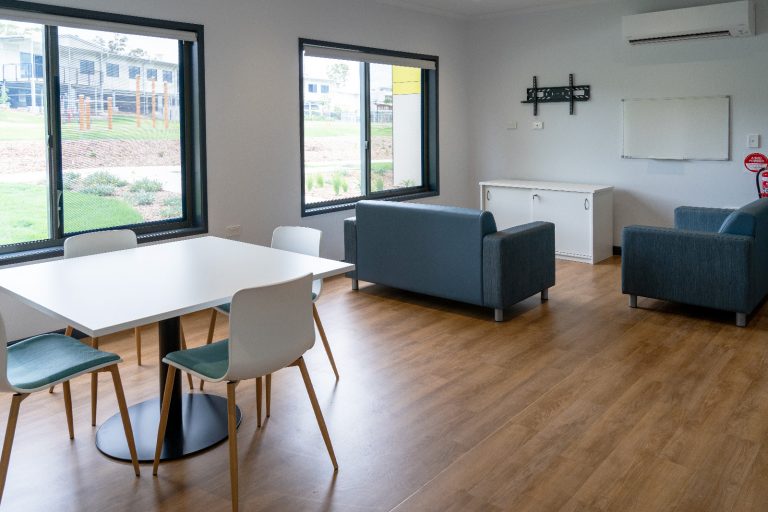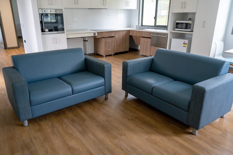 BFX Furniture Healthcare Division in partnership with Queensland Health supplied furniture for the Rockhampton Drug and Alcohol Rehabilitation Facility. The brand new $14.3 million facility comprises of over 60 furnished rooms including Adult Residential Accommodation, Withdrawal and Administration, Recreation and Treatment and Family Treatment Rooms. All loose fit-for-purpose furniture was supplied by BFX with a high focus on providing comfortable and durable pieces for a demanding environment with high needs clients. Anti-microbial vinyl and ultra durable fabrics met specific healthcare environment requirements. Key furniture pieces were designed and manufactured by BFX for the project, meeting exact requirements. Calm and relaxing colours were chosen to coordinate with the rooms decor.
