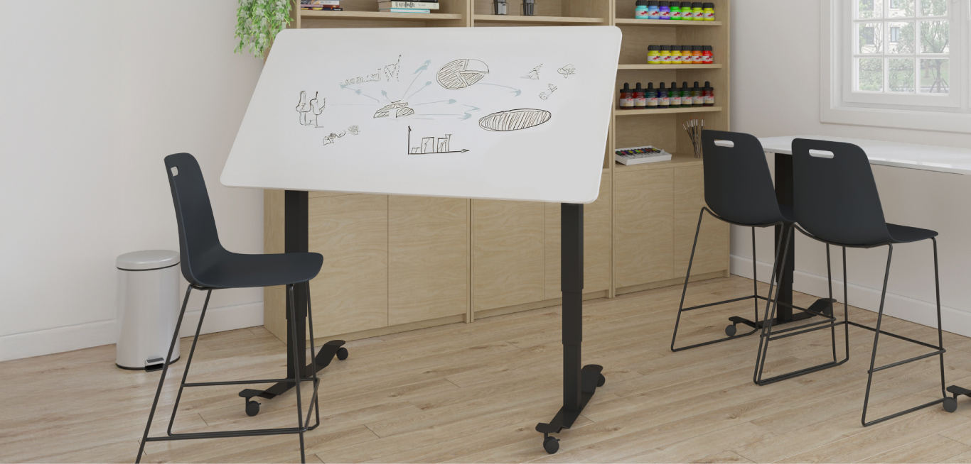 - Gas-assisted sit-to-stand height range supports active use in learning & commercial spaces
