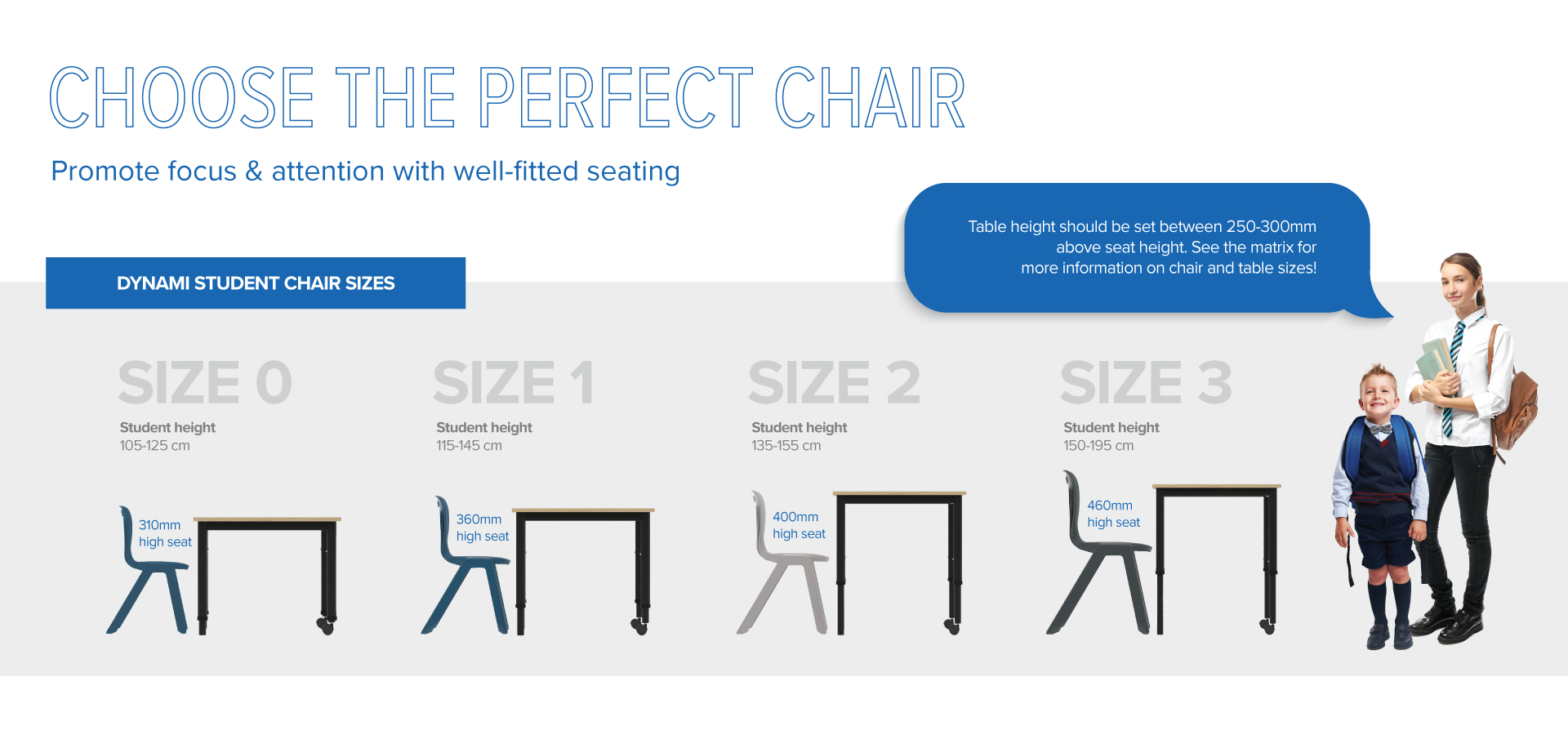 Size 3 - 460 Seat Height / 835h x 500w x 540d