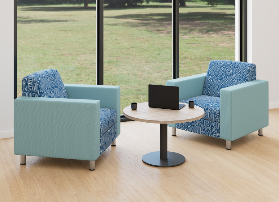 Choose from durable, commercial-grade fabrics or two-tone upholstery to complement your interior. Geneva brings structure, style, and comfort to every environment.
