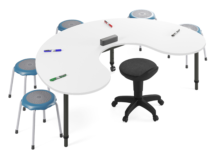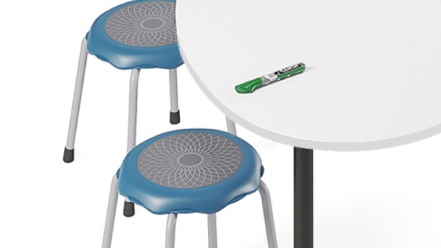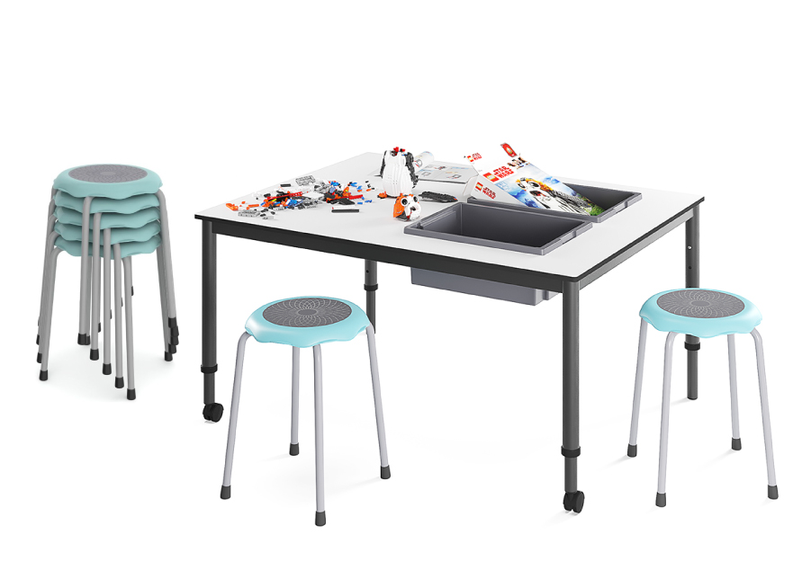 Lightweight stools reconfigure easily for group or individual activities, stacking neatly to save space when not in use.