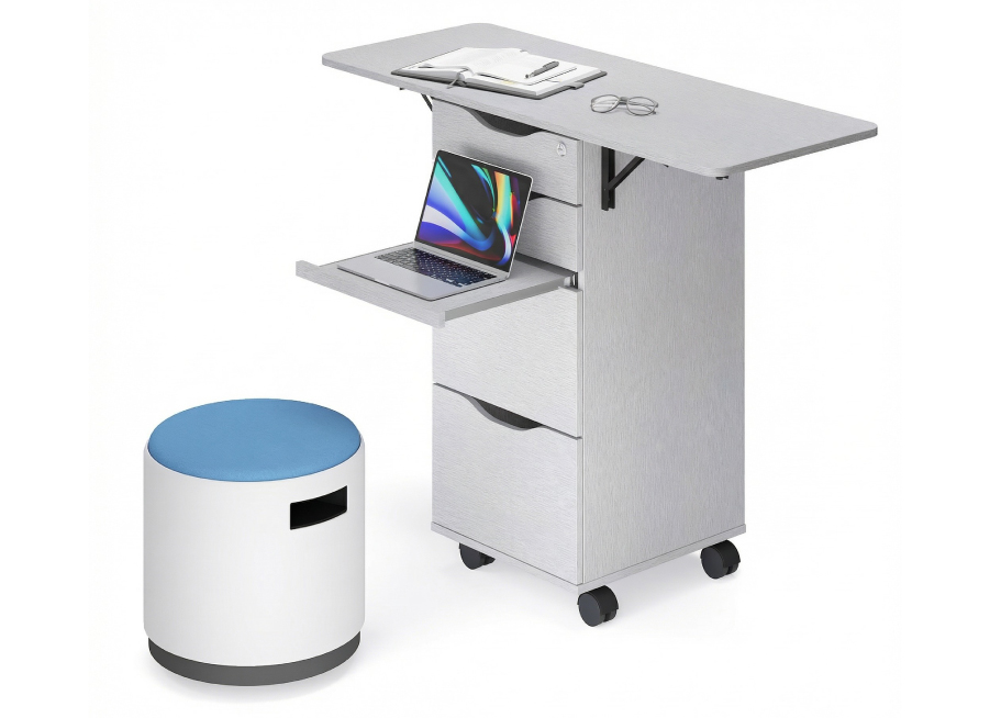 Folding side panels instantly expand your work area, then fold down to save space when not needed. The compact design and standing-height top make this unit ideal for active, flexible learning spaces.