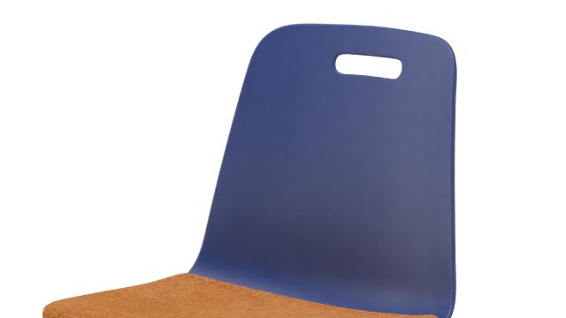 | Materials | Polypropylene moulded shell (recyclable) Back pull handle Powder-coated steel legs Upholstered fabric seat pad |