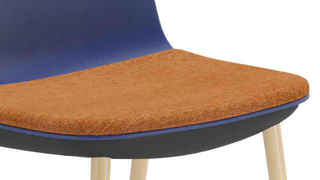 Timber-look powder-coated 4 leg frame and upholstered seat pad combine lasting durability with refined comfort, suited to contemporary learning, training and collaborative spaces.