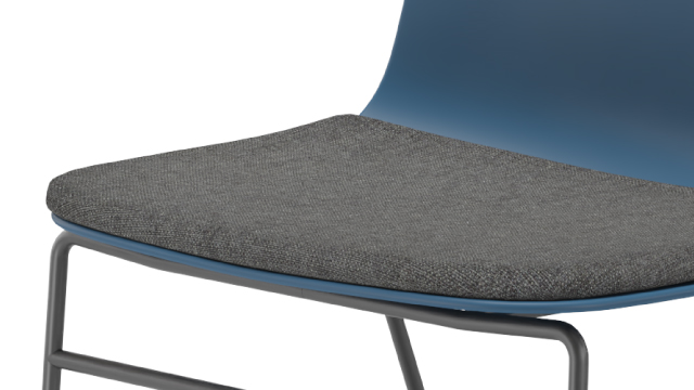 Durable sled base and upholstered seat pad combine ergonomic comfort with modern elegance for today’s adaptable learning and working spaces.