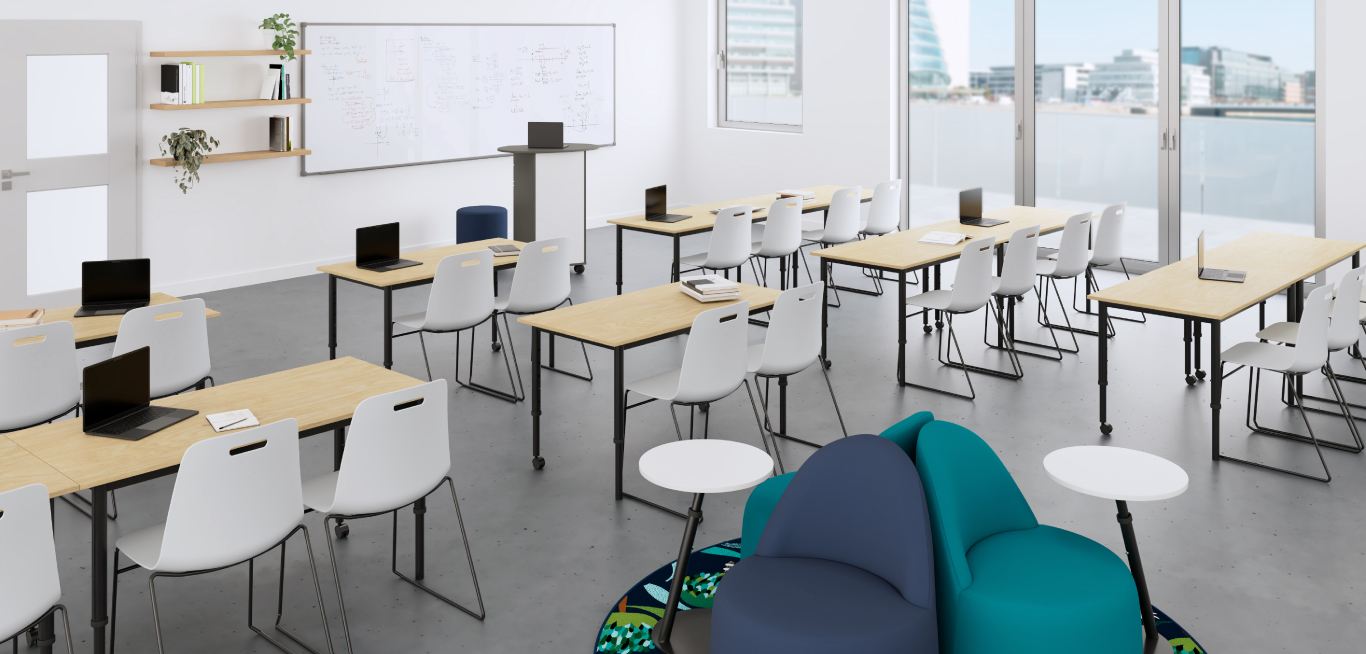 Auto-return seat and easy mobility encourage adaptable, flexible use in classrooms, libraries and shared spaces.