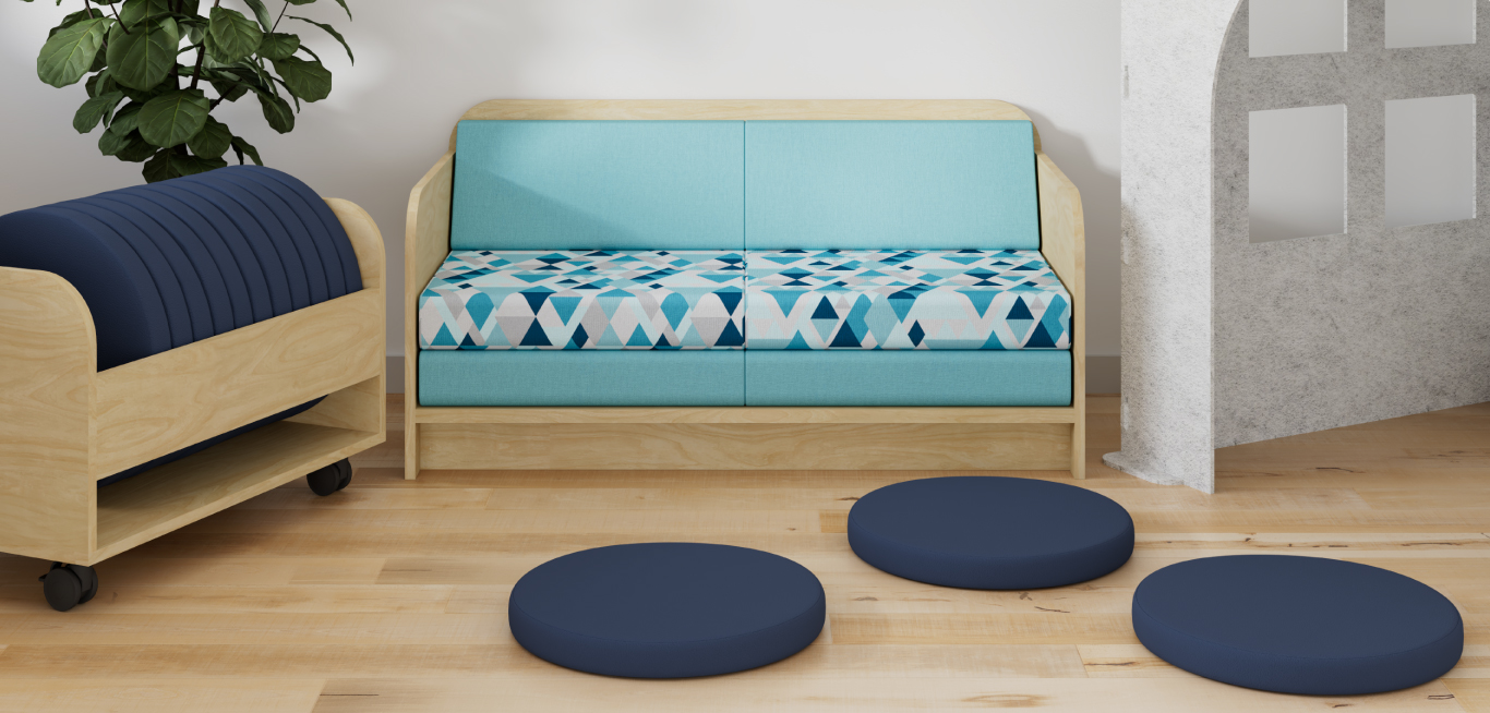 Sprout Play Lounge creates a welcoming retreat for younger learners, offering a comfortable place for one or two children to settle in for reading, quiet time or shared activities. It helps define relaxed, child-focused zones that support connection and engagement throughout the school day. Crafted from durable BFX Board, Sprout Play Lounge balances strength with a warm, inviting aesthetic. Loose cushions extend its function beyond seating, encouraging children to build cubbies, vehicles or imaginative settings that foster collaborative and independent play. Upholstered in easy-clean Aura Vinyls or a selection of BFX Exclusive Printed Fabrics, with custom fabric or vinyl options available, Sprout is lightweight and easy to reposition, adapting smoothly as layouts evolve. Pair with Jackpot Rectangle and Round Seat Pads to create layered settings that encourage reading, creativity and connection.